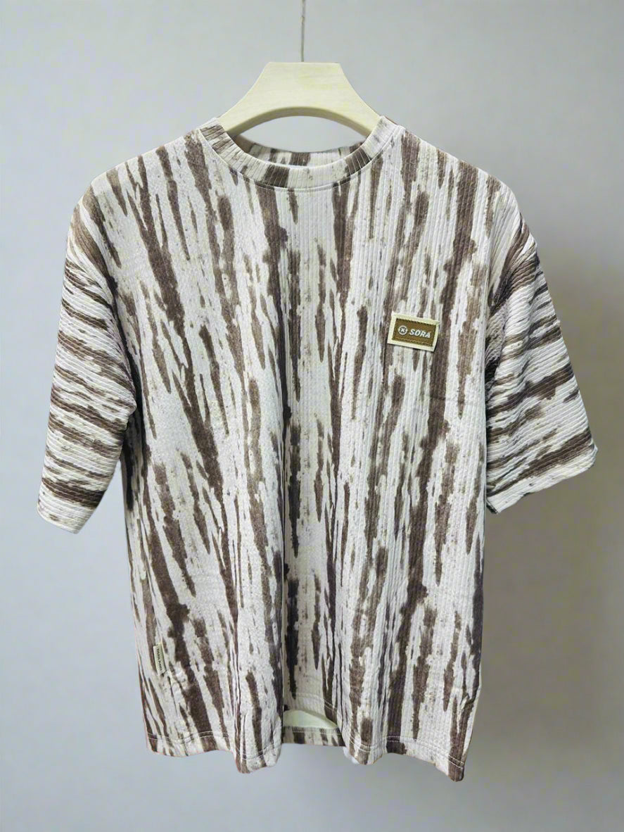 Printed textured Over-Sized Round Neck T-Shirt